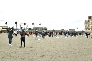 この日の海さくらでのゴミ拾いは参加者全員でのラジオ体操から始まりました!