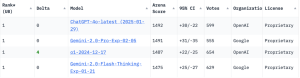 「ChatGPT-4o-latest (2025-01-29)」がランクインしています。
