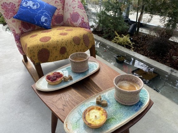 工房では、アート作品はもちろんのこと、お茶と一緒にお菓子も楽しむことが出来ます。